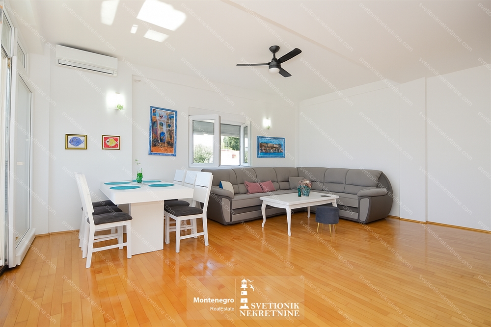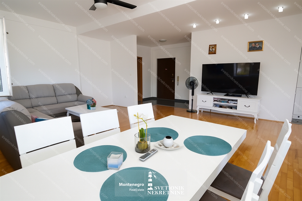A bright and spacious apartment with sea view and garage is offered for sale, located in the peaceful and well-connected neighborhood of Topla 1 in Herceg Novi.