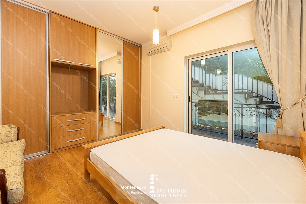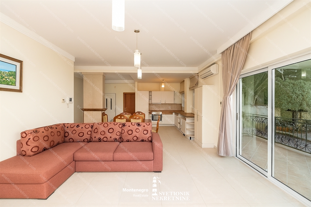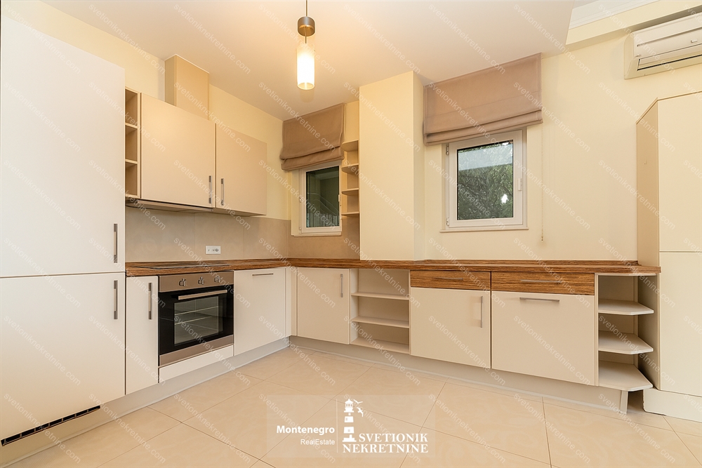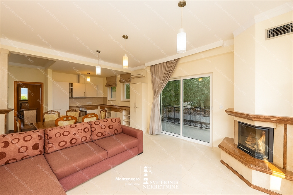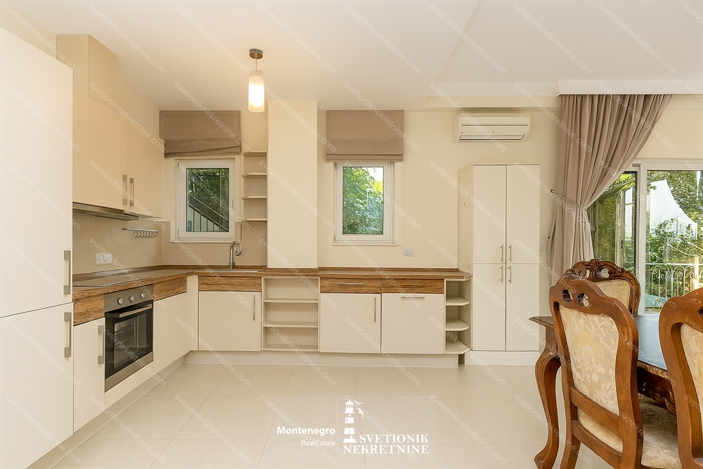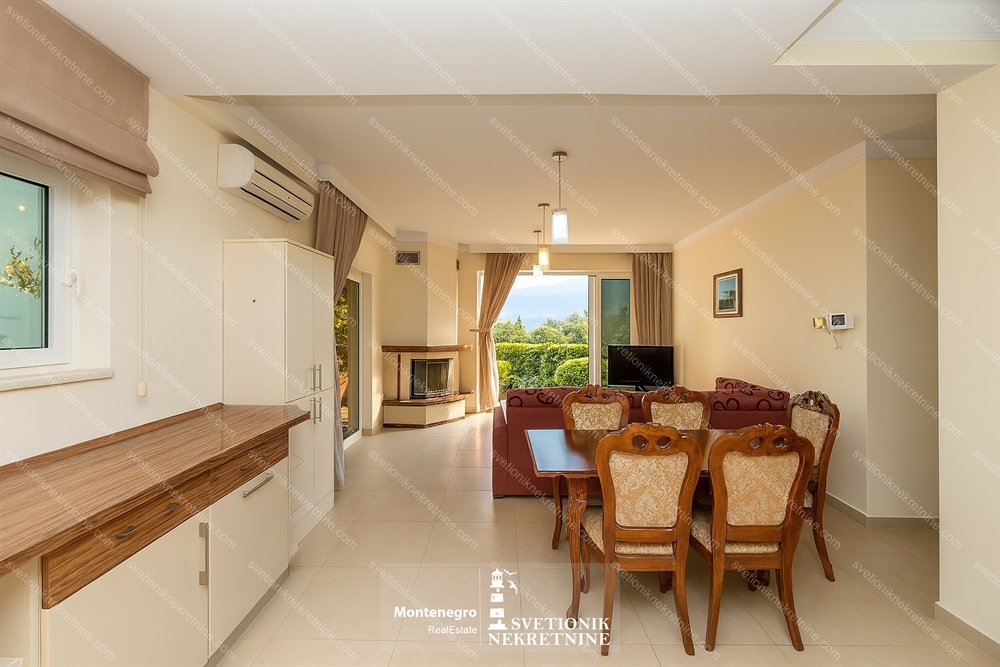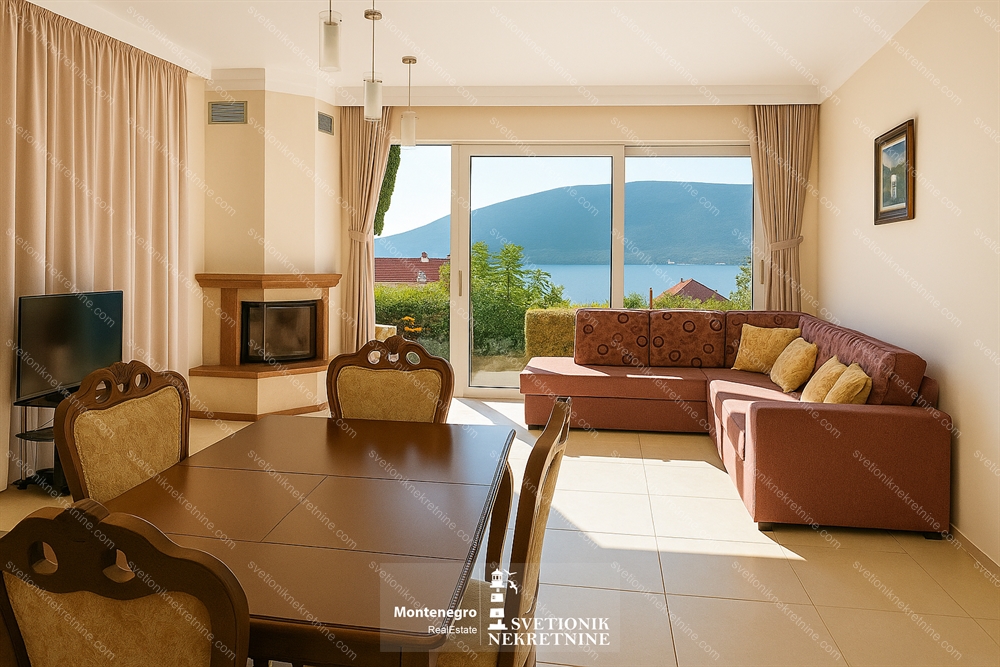 Located just 100 meters from the sea in the charming settlement of Djenovici, this fully furnished three-bedroom apartment offers comfort, style and proximity to the luxury marina resort Portonovi.