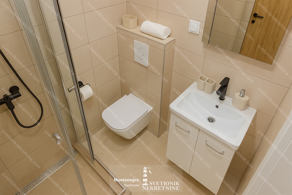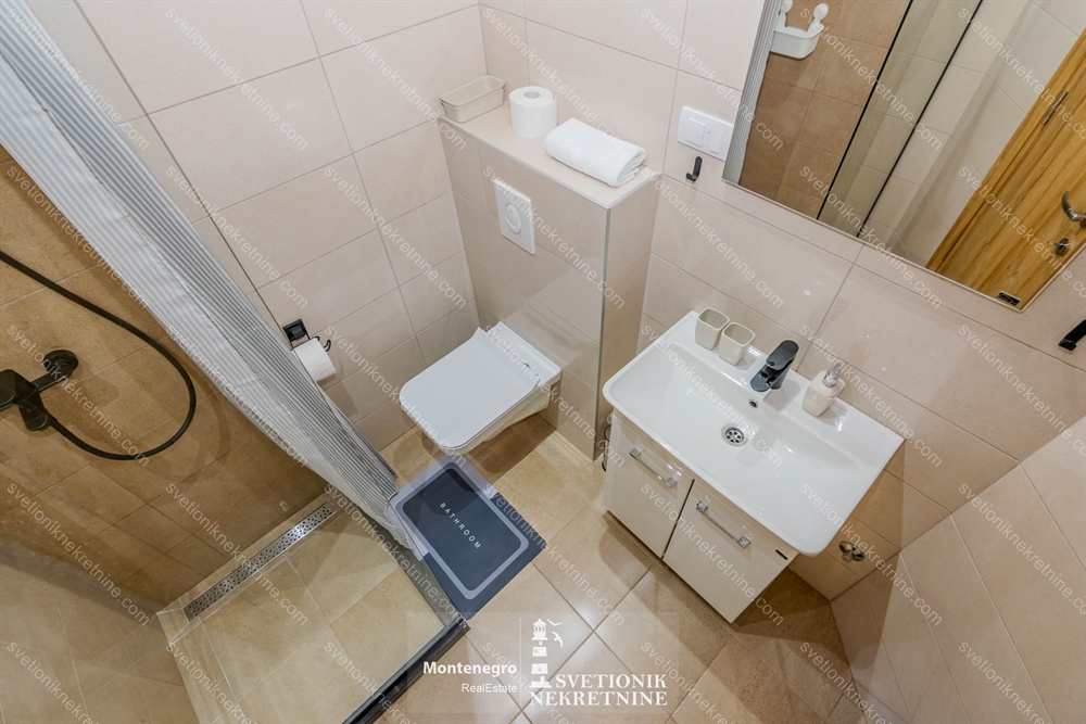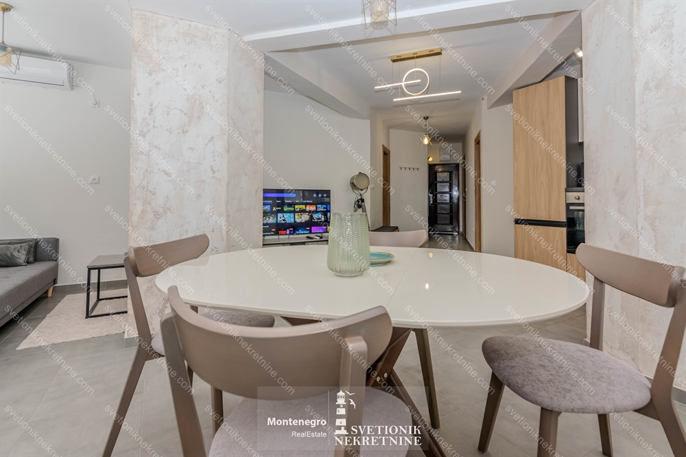 For sale, a bright and spacious two-bedroom apartment in excellent condition, located in Bijela, Herceg Novi. The apartment has a total area of 79m² and is sold fully furnished with new furniture and appliances – move-in ready.