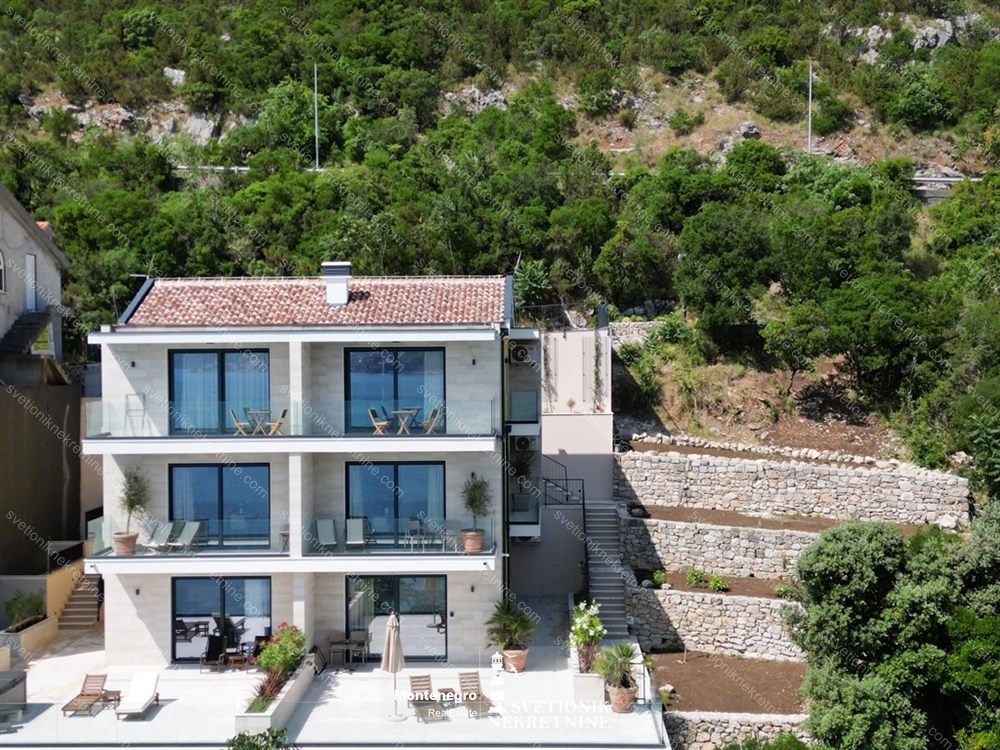 Superbly furnished luxury apartment located in a modern villa on the very coast in Njivice, just 2 km from Igalo and 4.5 km from the old town of Herceg Novi.
