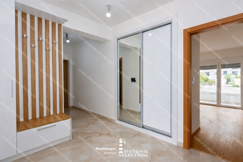 Svaka prostorija je klimatizovana. U dnevnom boravku, hodniku i kupatilima postavljeno je podno grijanje, sto omogucava maksimalnu udobnost tokom cijele godine. Podovi i zidovi su obradjeni brusenim granitom, sto stanu daje sofisticiran i moderan izgled.