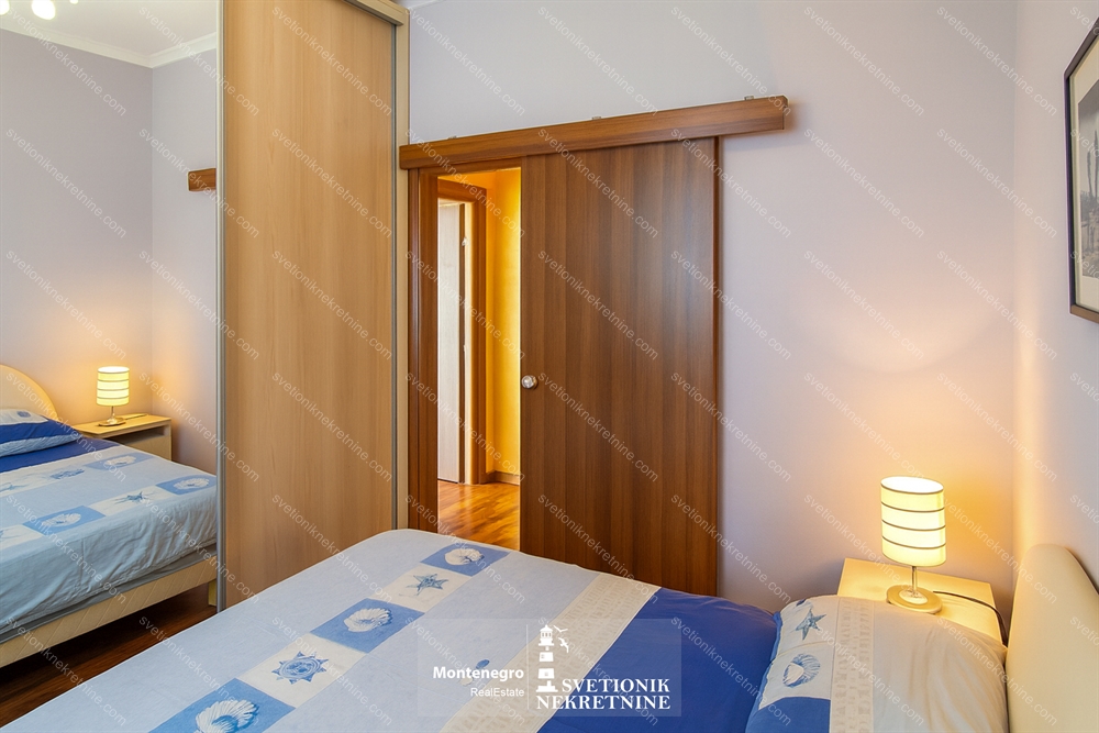 Stan se nalazi na spratu manje stambene zgrade u prvom redu do mora, u neposrednoj blizini luksuznog Portonovi rizorta. Povrsina stana iznosi 42 m².
