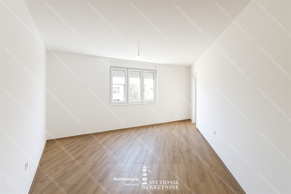 Stan nema pogled na more. Nalazi se u okruzenju novogradnje, daleko od buke i saobracaja. U neposrednoj blizini se nalaze sportski centar, veliki marketi i svi potrebni sadrzaji za svakodnevni zivot.