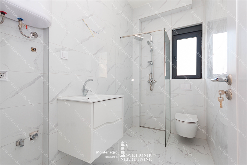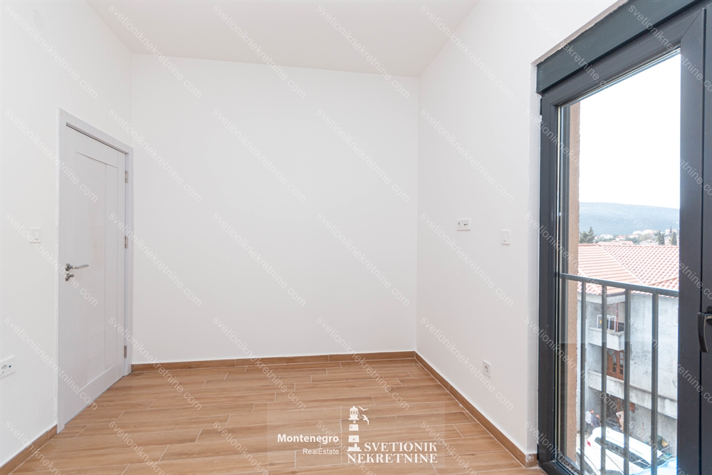 Na samo 150 metara od setalista i plaze, u mirnom i zelenom delu Djenovica, nalazi se ovaj suncan jednosoban stan u novoizgradjenoj zgradi visokog kvaliteta. Zahvaljujuci juznoj orijentaciji i velikoj staklenoj povrsini, stan je okupan dnevnom svetloscu i nudi otvoren pogled na more i ulaz u Bokokotorski zaliv.