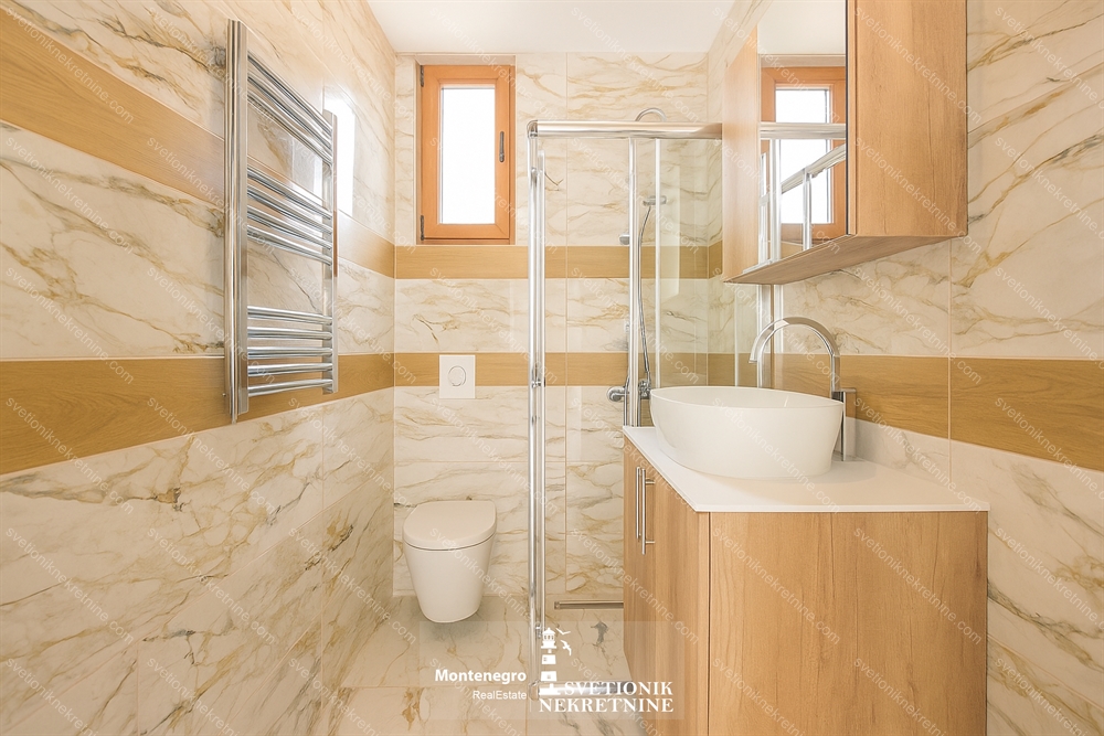 Zgrada je novije gradnje, posjeduje lift i obezbijedjen parking za stanare. Udaljena je svega 200 metara od mora i setalista, sto ovaj stan cini odlicnim izborom kako za zivot tokom cijele godine, tako i za izdavanje u letnjoj sezoni.