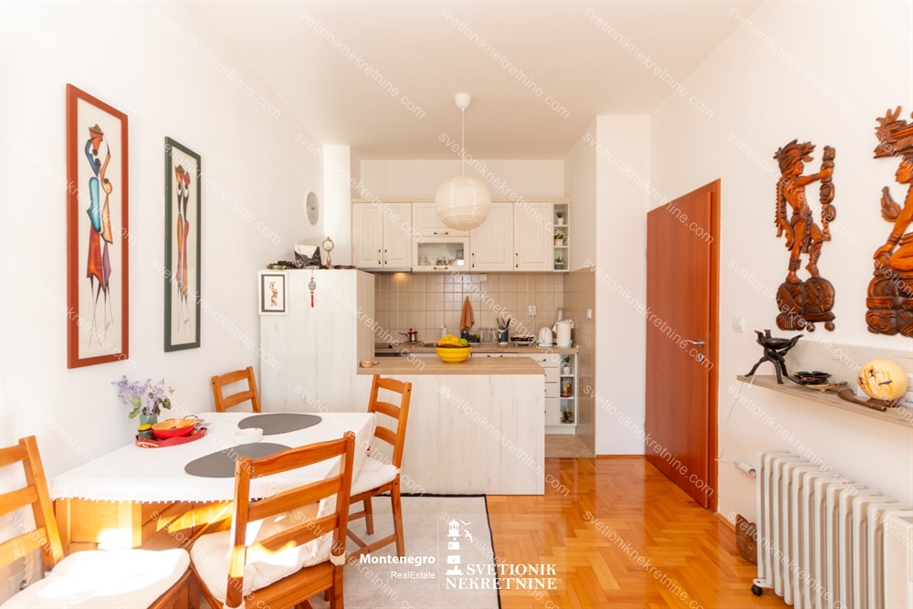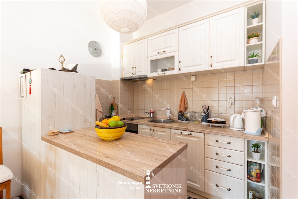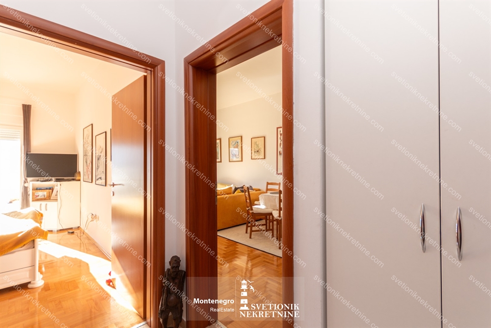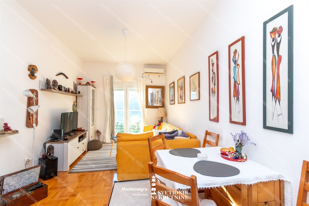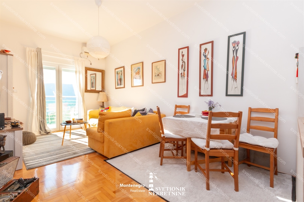 Na prodaju vrlo funkcionalan jednosoban stan povrsine 49m2, kompletno juzno orijentisan, sa izlazom iz dnevne i spavace sobe na terasu sa koje se pruza pogled na more.