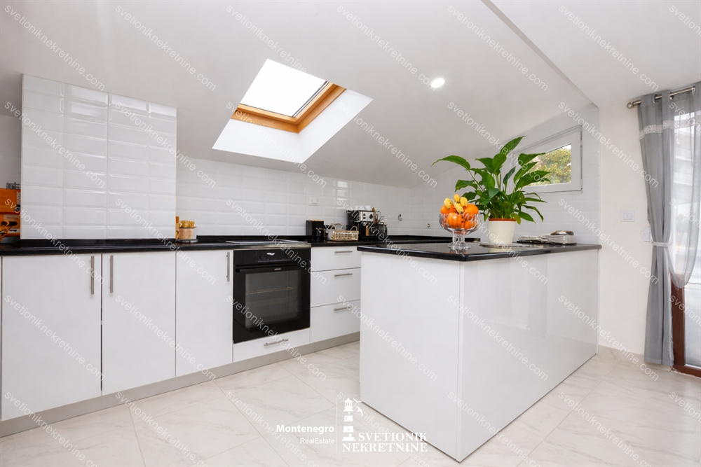Sav namjestaj je radjen po mjeri, od punog drveta, a stan se prodaje sa kompletnim namjestajem i tehnikom. Ugradjeni su i filteri za preciscavanje vode.