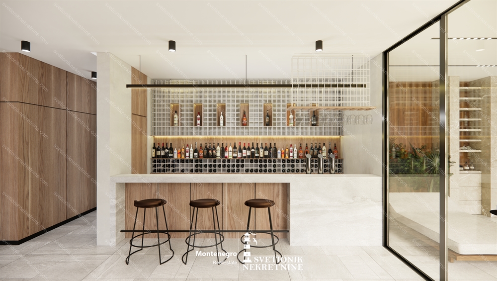 Apartmani su projektovani sa velikim staklenim povrsinama, prirodnim materijalima i funkcionalnim rasporedom, pruzajuci spoj modernog komfora i mediteranskog ambijenta tokom cele godine.