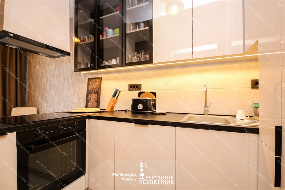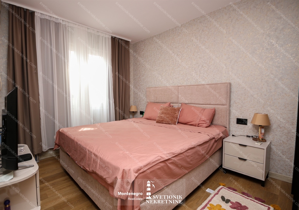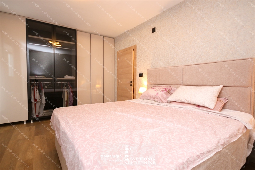 Stan povrsine 70m² pruza idealan spoj udobnosti i atraktivne lokacije. U potpunosti je opremljen modernim namestajem po meri, sa odabranim detaljima koji prostoru daju toplinu i savremen karakter.