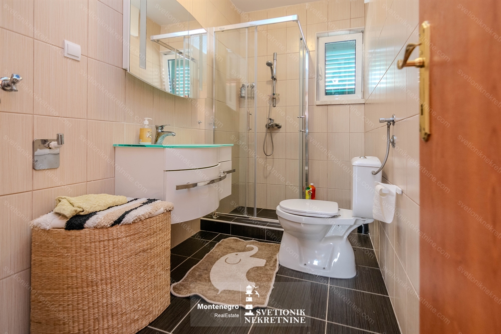 Kuca se nalazi u prvoj liniji uz more i poseduje privatnu plazu i vez za brod, sto je cini izuzetno retkom ponudom na trzistu nekretnina u Boki Kotorskoj.