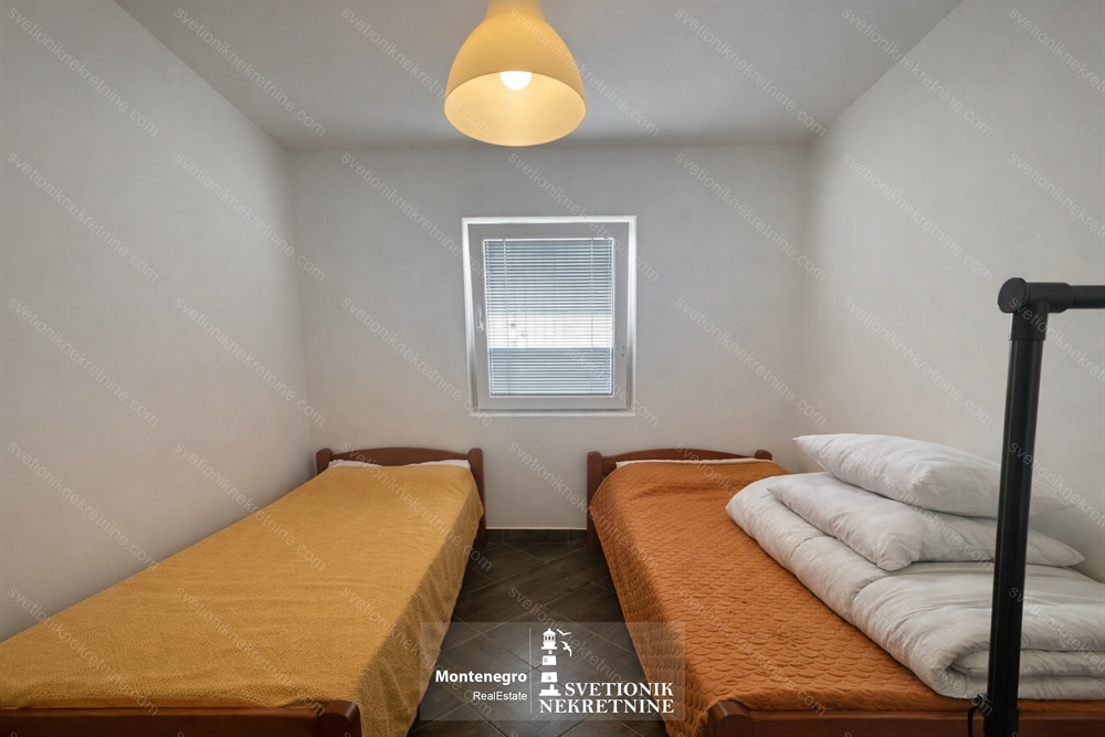 Stan se nalazi u drugom redu od mora, na atraktivnoj lokaciji u blizini plaza, prodavnica, restorana, poste i svih neophodnih sadrzaja.