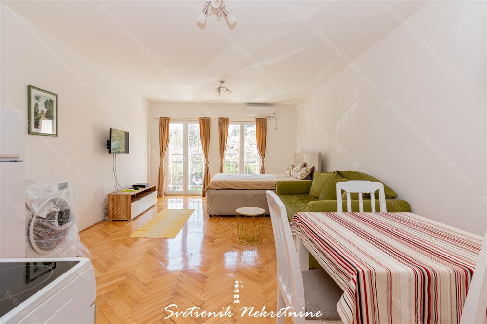 Na prodaju je kompletno renoviran i opremljen studio apartman povrsine 34m², smesten u stambenoj zgradi na odlicnoj lokaciji – neposredno uz luksuzni kompleks Porto Novi u Kumboru.